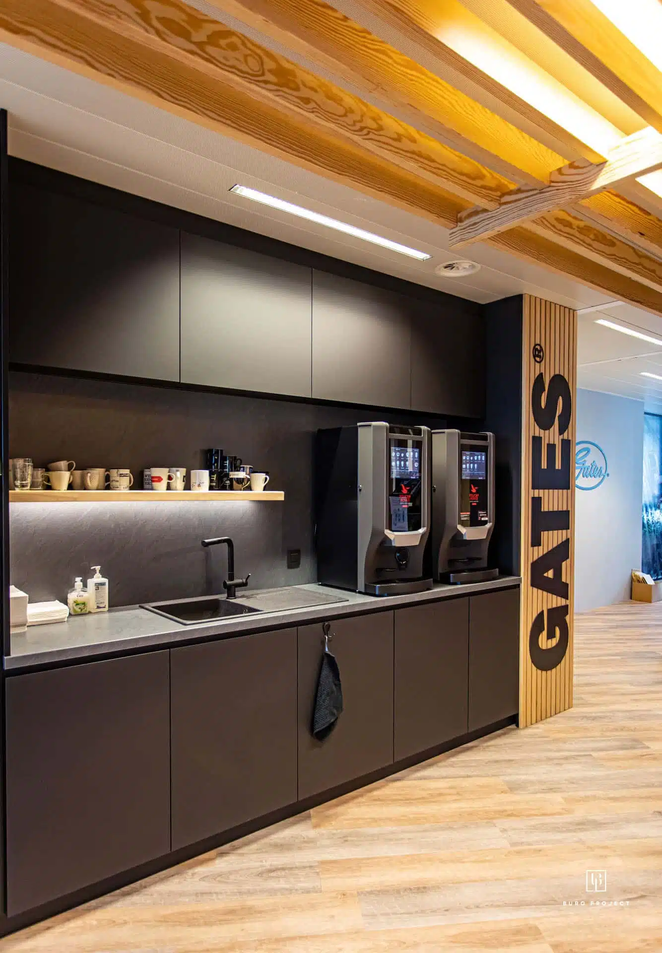 Le bureau d’Alost est une division du groupe international Gates Corporate. Les couleurs bien connues de l’entreprise – noir, gris et rouge – ne pouvaient donc pas manquer dans l’aménagement du bureau. « Mais nous voulions surtout que notre bureau évoque une atmosphère chaleureuse en plus de notre identité d’entreprise. Buro Project nous a aidés à utiliser les couleurs de manière créative, de sorte que tous les espaces reflètent la culture d’entreprise sans que l’utilisation des couleurs ne devienne trop écrasante. »