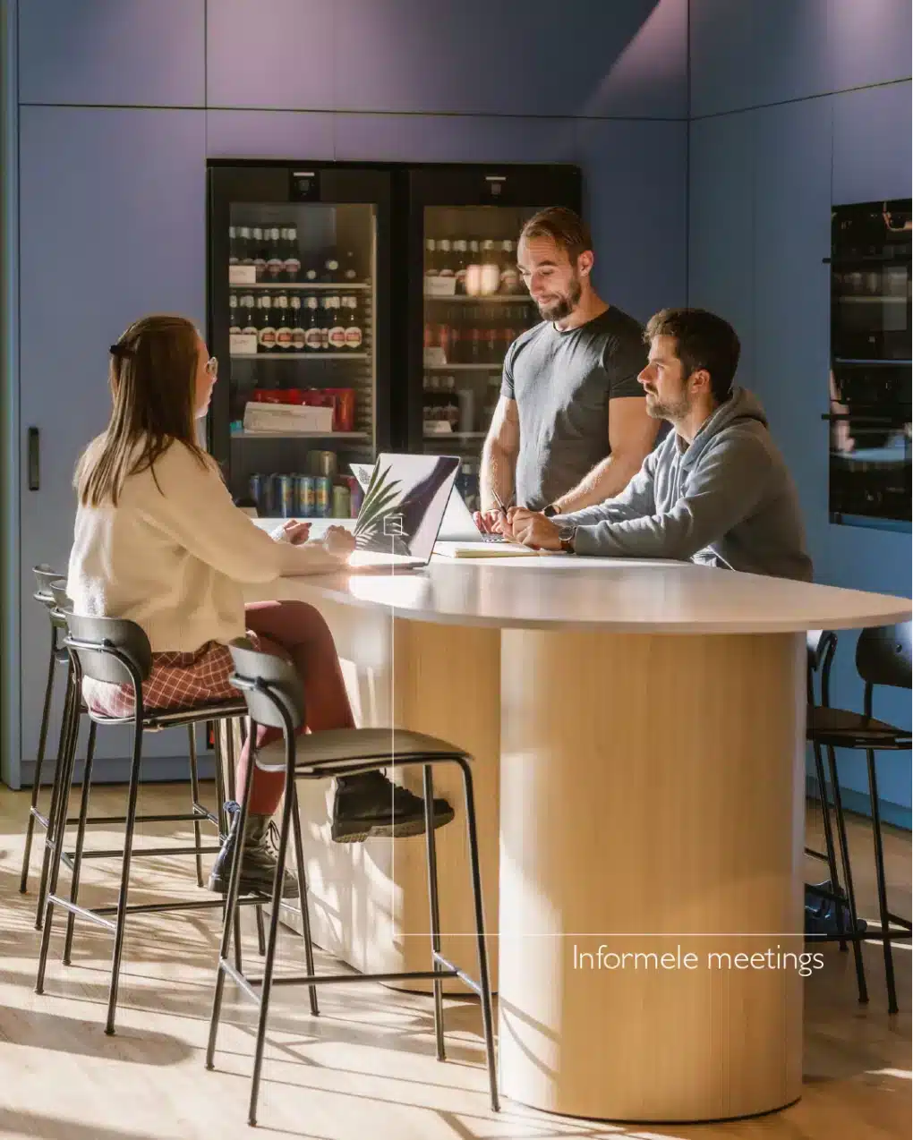 Even weg van je scherm, rechtstaan, iets drinken, met iemand praten die niét in je team zit. Kleine acties, grote impact. Een keuken creëert letterlijk ruimte om te deconnecteren en tegelijk opnieuw op te laden. Wil je medewerkers helpen om mentaal scherp en energiek te blijven? Dan begin je met een ruimte die pauzes aanmoedigt — niet afstraft.