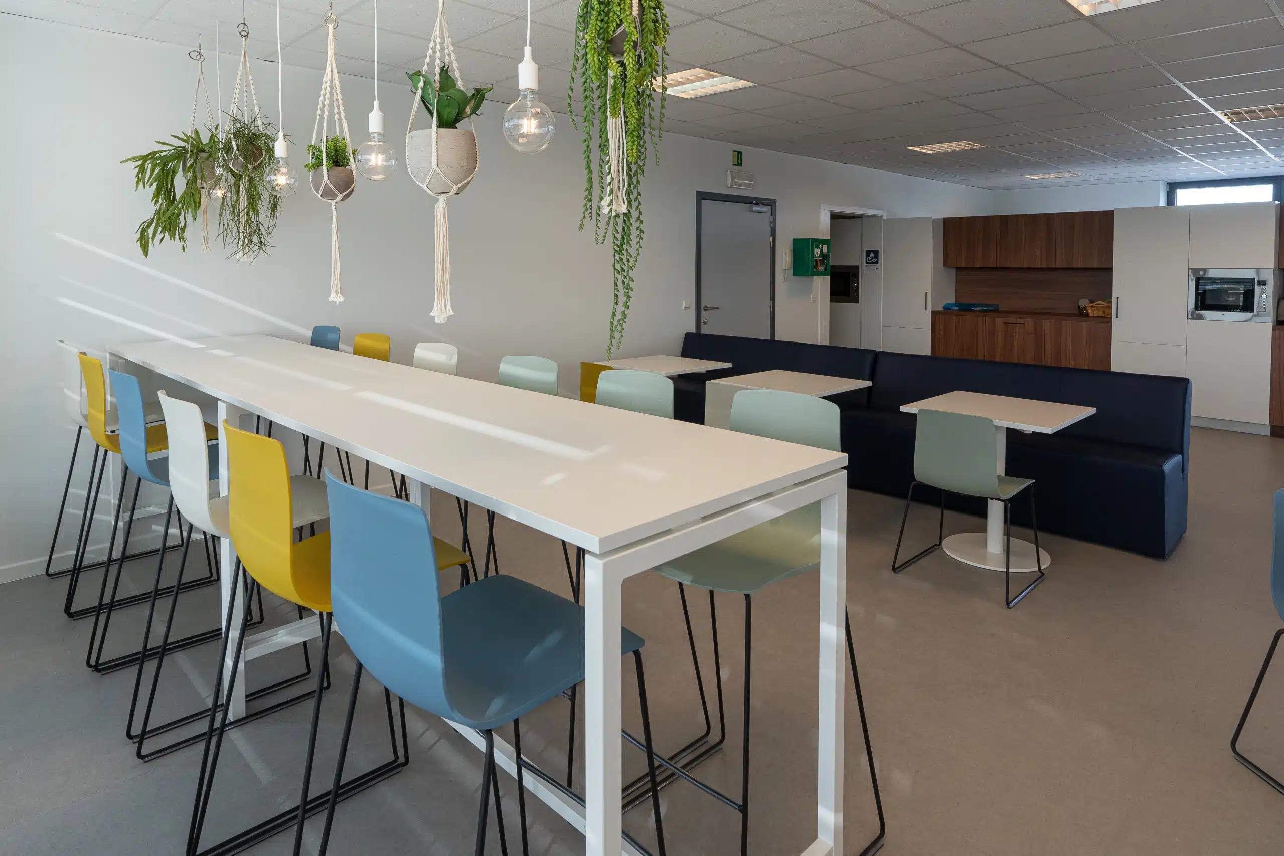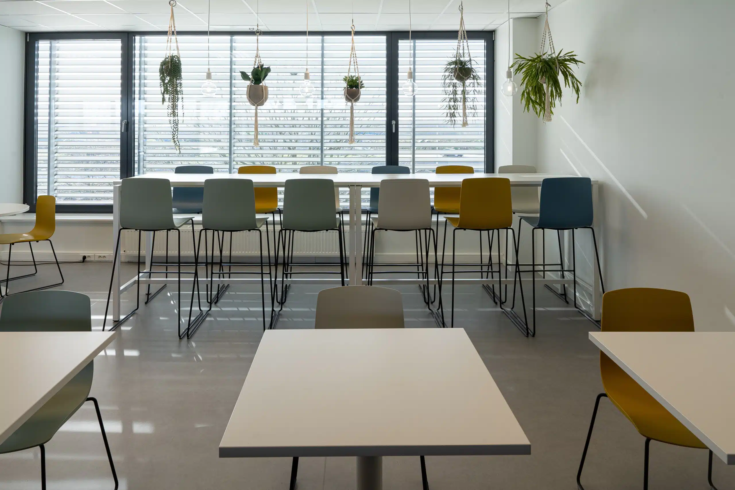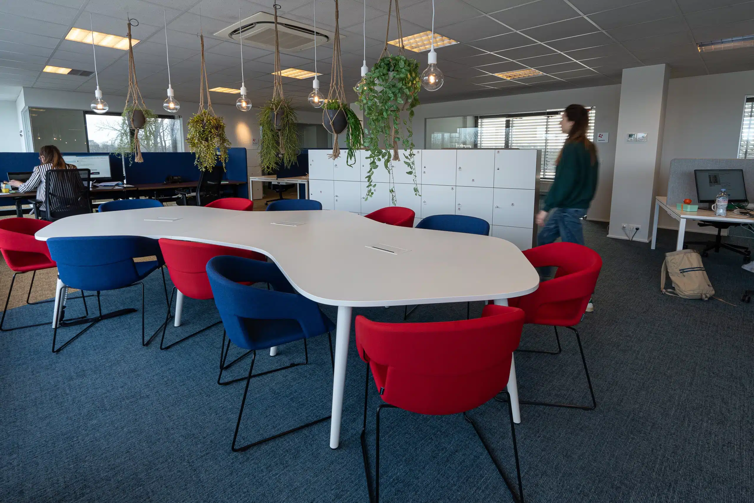 Het team van AG Solution laat zich niet afschrikken door kleur en ritme. Hun kleurenpalet komt stijlvol naar boven in de tapijten, wanden en meubels. In de vergaderzalen en brainstormplekken worden de stemkleuren dan weer ingetoomd via akoestische snufjes. De ruime variatie aan zit en sta werkplekken voorziet dynamiek én de mogelijkheid om gerust eens de benen te strekken of er languit voor te gaan.