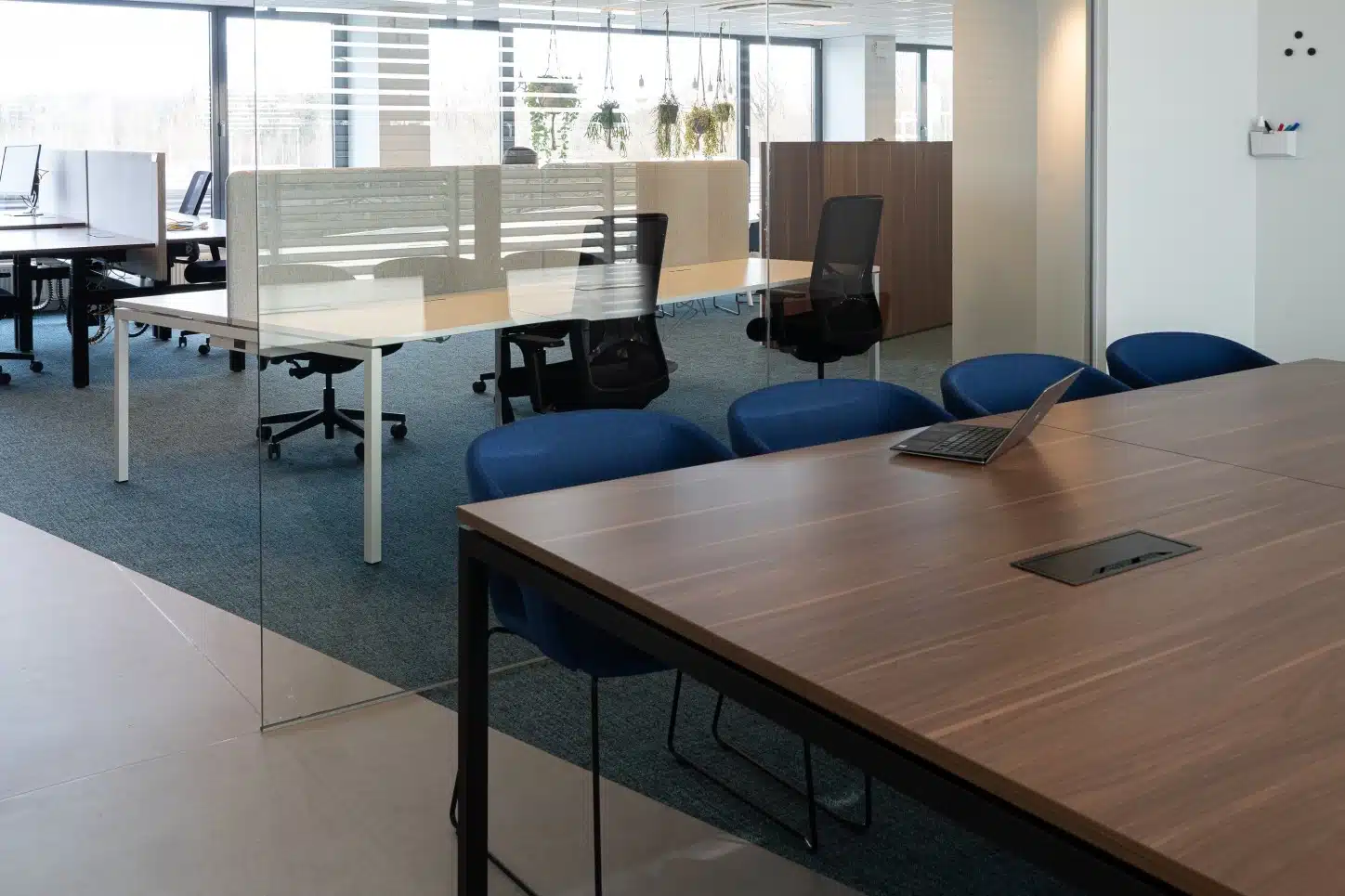 Voor de Spaanse kantoren verzamelden we alle meubels in België en vervoerden we het via onze eigen partner naar Barcelona en Madrid. Op deze manier werd ons maatwerk op een afstand met hetzelfde oog voor detail en vakmanschap in elkaar gezet.