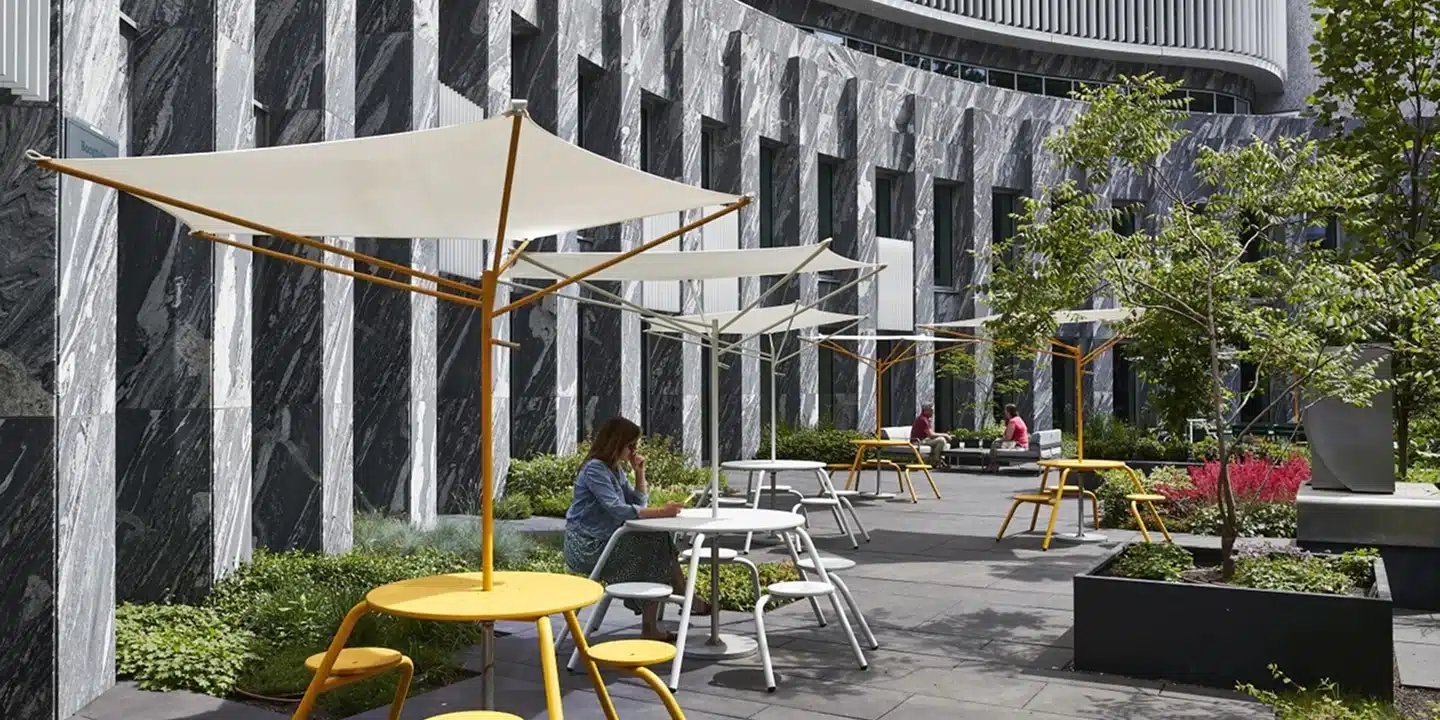 Argenta wilde een levendige ruimte waar de klant centraal staat, waar medewerkers geïnspireerd raken en waar ontmoetingen op het terras en in de gedeelde ruimtes de norm zijn. “Want we geloven dat samenkomen in een ongedwongen sfeer of tussen het groen goed is voor de gezondheid van onze collega’s”, vertelt Bart Vandenabeele, Facility Manager bij Argenta.