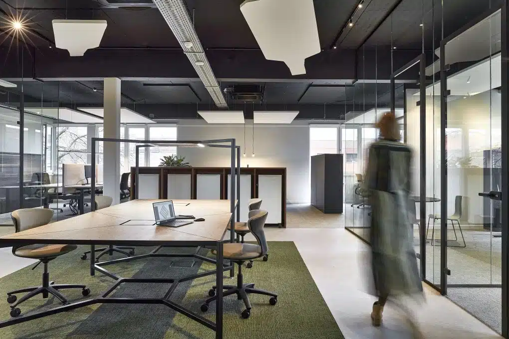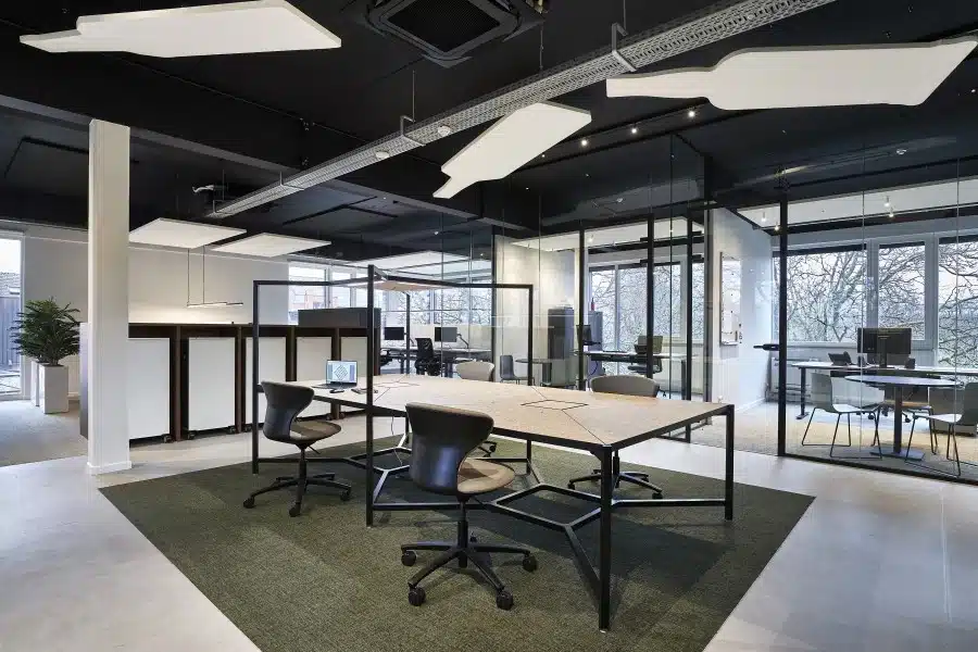 “Die keuzevrijheid, openheid en warmte trokken we door in de kantoren. Met logisch ingedeelde flexwerkplekken in het midden van de ruimte en afzonderlijke bureaus of vergaderwerkplekken daarrond, kiezen medewerkers hun favoriete plaats.”