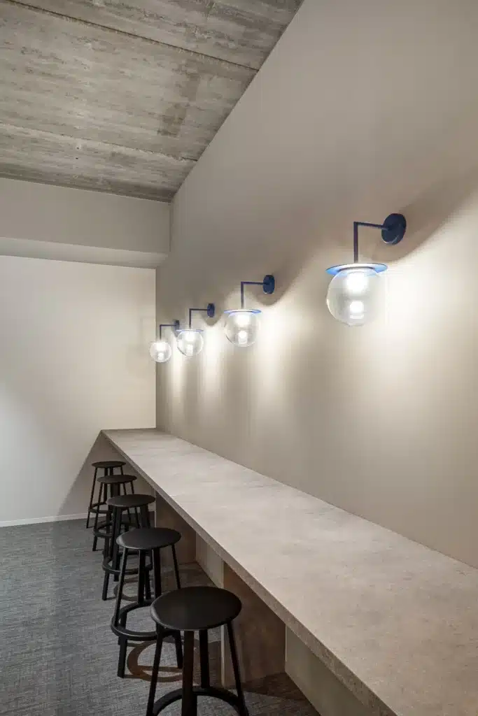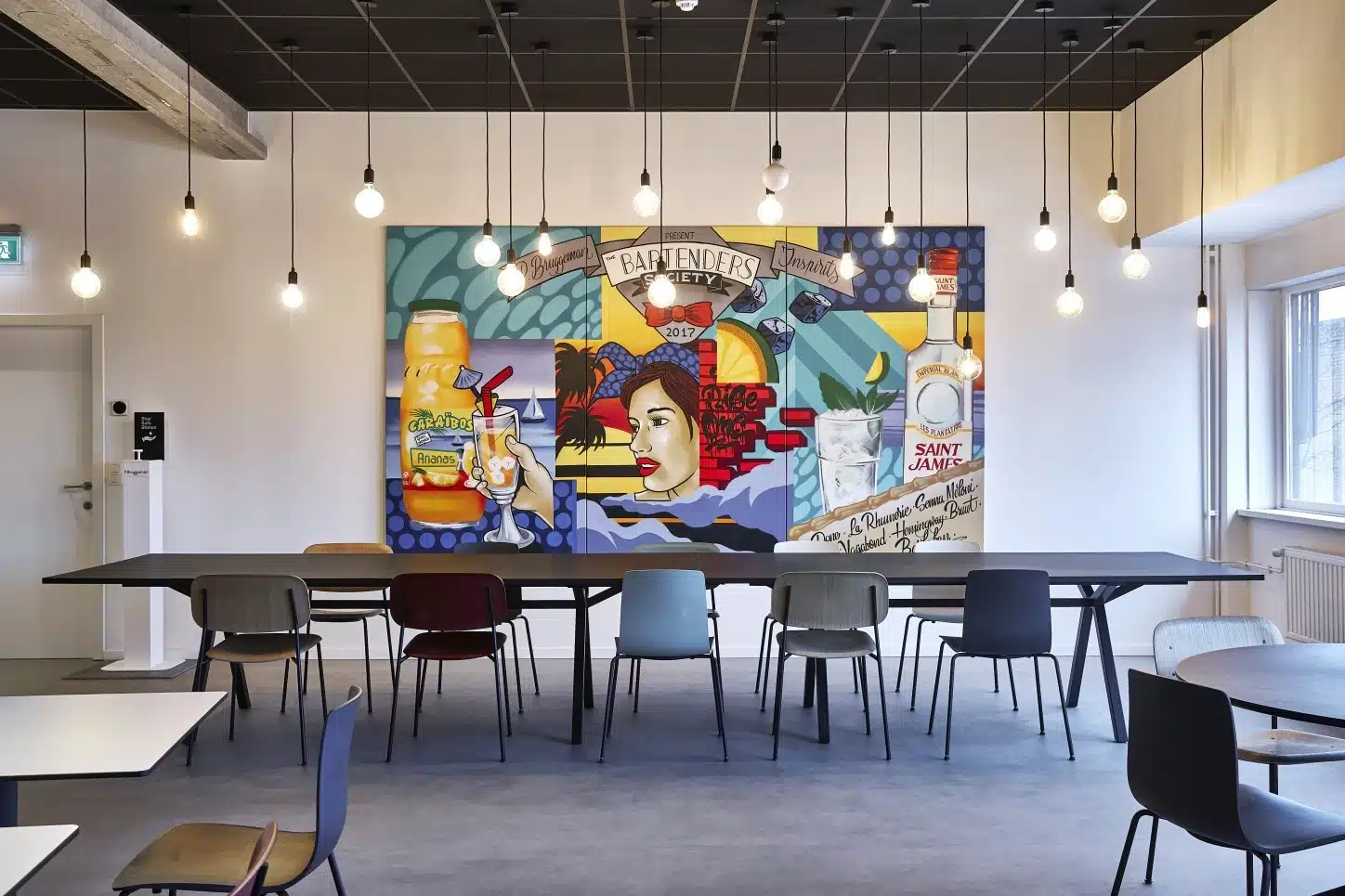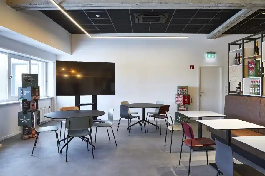 Van productiemedewerkers, verkopers, marketeers, administratieve krachten tot teamleiders en directieleden – om één geheel te maken van zo’n smeltkroes aan collega’s, moet iedereen zich thuis voelen op kantoor. “De ongezellige ‘refter’ toverden we om in een uitnodigende ontmoetingsruimte waarin iedereen z’n gading vindt”, vertelt Arthur Van Belle, project advisor bij Buro Project. “De verschillende tafels, stoelen, kleuren en accessoires roepen in elk hoekje wel een andere sfeer op.”