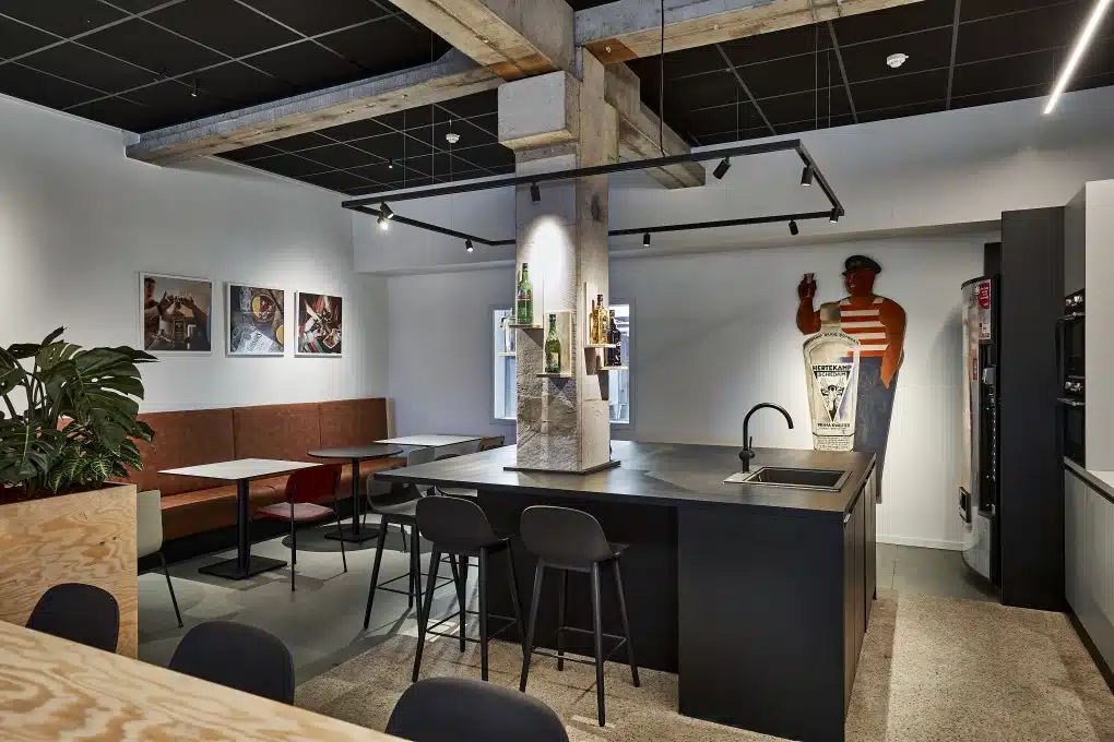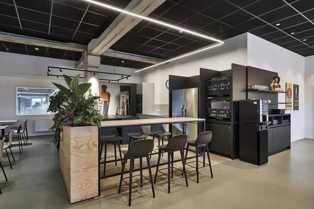 “Collega’s zoeken er soms ook een rustig hoekje op om zich te concentreren of te overleggen. Daarnaast organiseren we nu makkelijk vergaderingen of teambijeenkomsten in onze ‘brasserie’. Met een handig groot beeldscherm en de open indeling lukt dat perfect – iedereen heeft nog steeds voldoende ruimte.”
