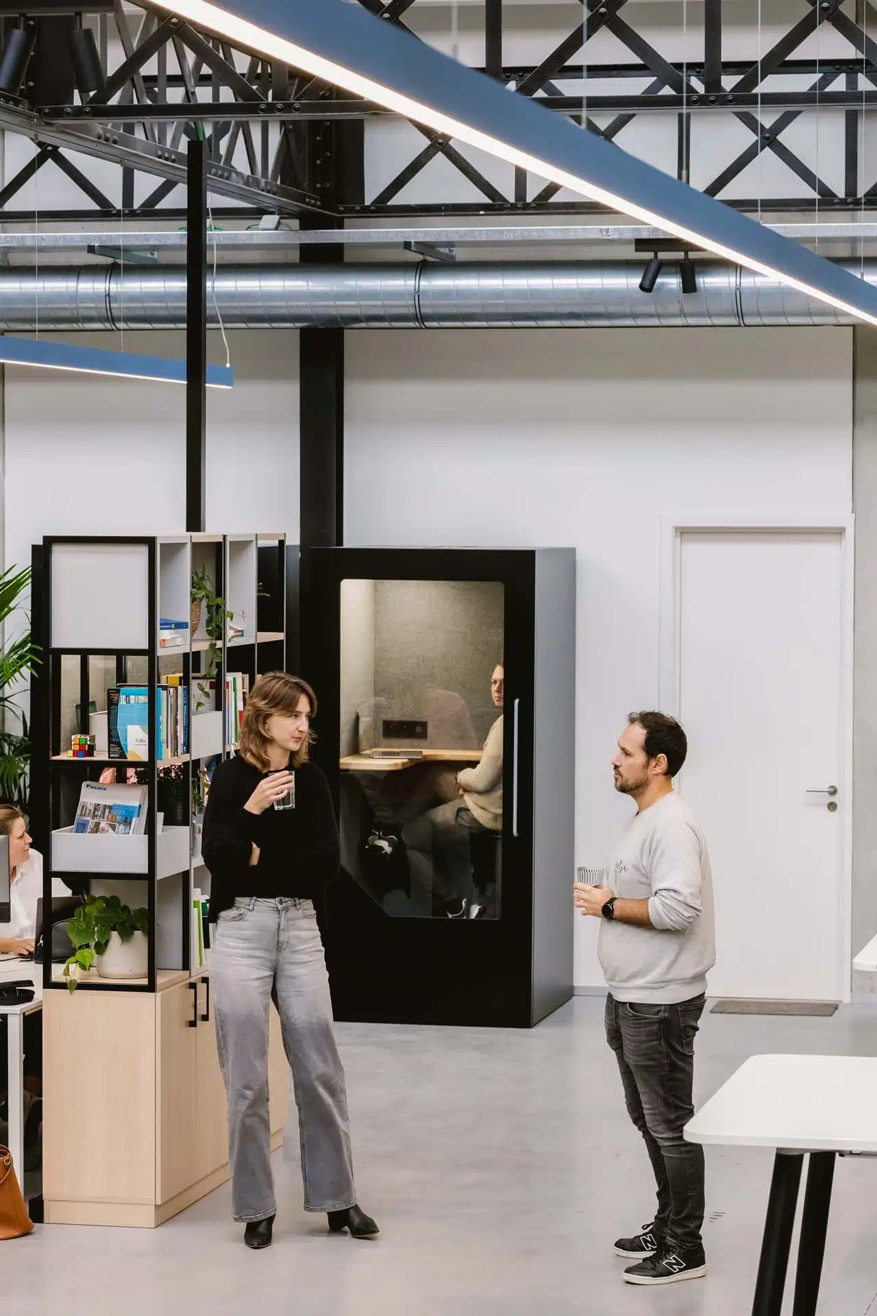 Met oog voor detail en functionaliteit werd er gekozen voor praktische werkplekoplossingen. Phonebooths bieden een perfecte setting voor videocalls en stille werkmomenten, terwijl vergaderruimtes voorzien van hoogwaardige technologie ideaal zijn voor klantgesprekken en brainstormsessies. Medewerkers ervaren de flexibiliteit als een meerwaarde: ze kunnen hun werkplek aanpassen aan hun behoeften op dat moment.