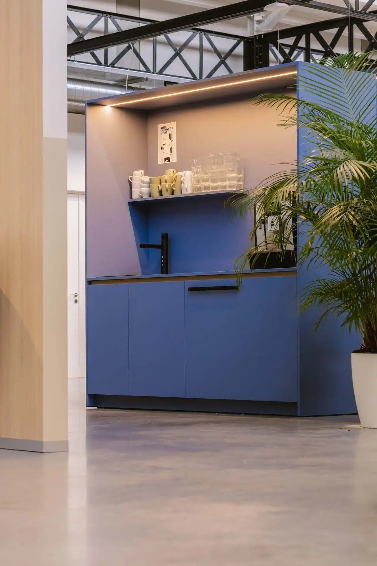 Na goedkeuring van het ontwerp startte de uitvoeringsfase. Stap voor stap werd de transformatie zichtbaar, tot het moment waarop het kantoor volledig af was en klaar voor gebruik. Het resultaat? Een inspirerende werkplek waar mensen zich thuis voelen, productief kunnen werken en in contact staan met collega’s.