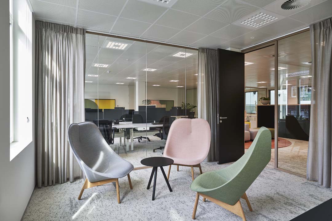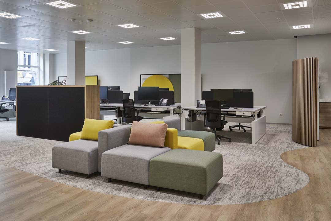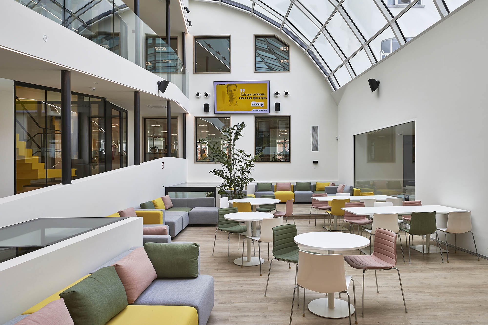 Het resultaat is een werkomgeving die niet alleen cijfers en strategie ondersteunt, maar ook het welzijn van iedereen die er werkt. Licht, groen en tactiele materialen maken het kantoor warm en toegankelijk. Elk detail, van de gele accenten tot de afgeronde vormen, draagt bij aan een plek waar je graag binnenstapt en nog liever blijft.