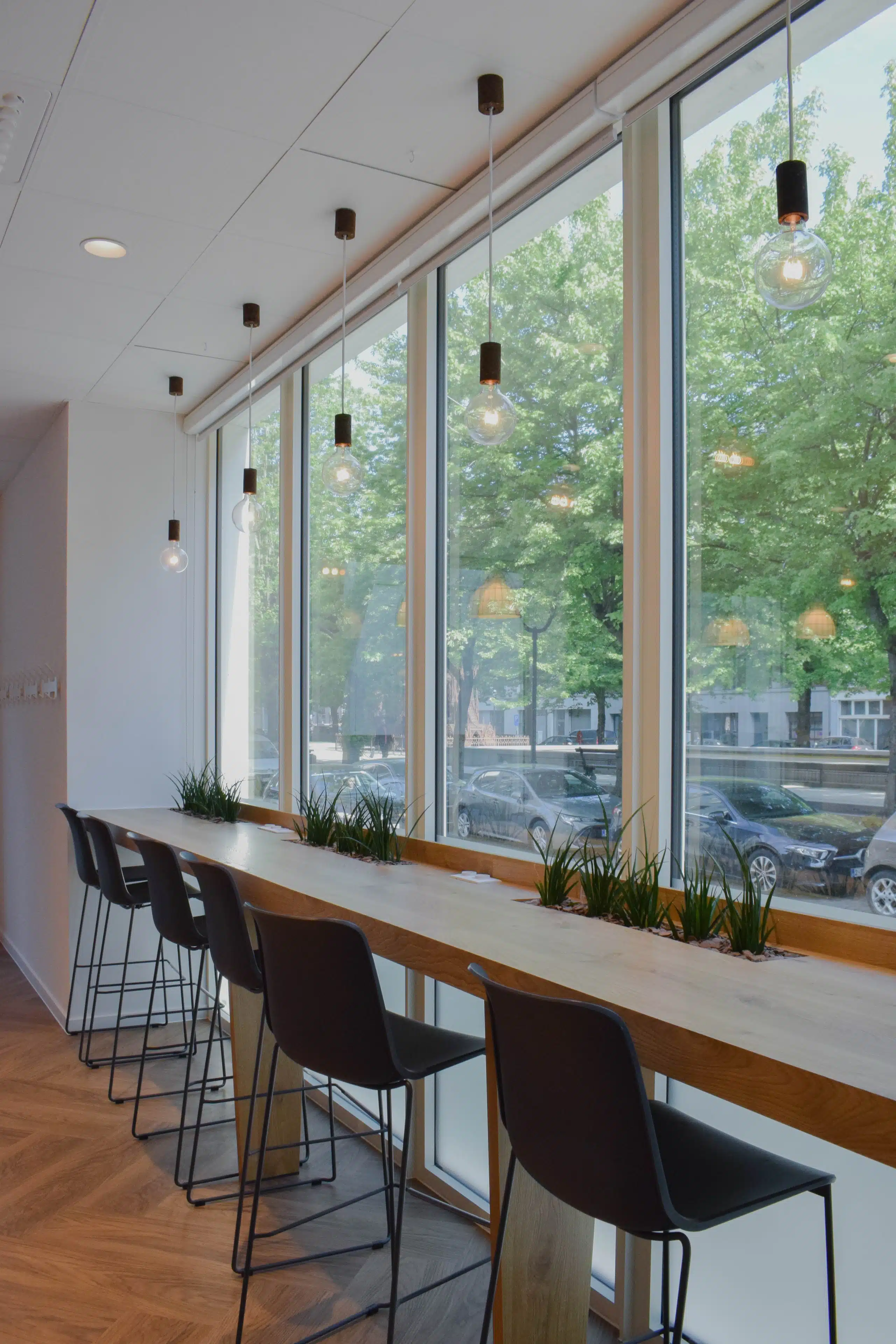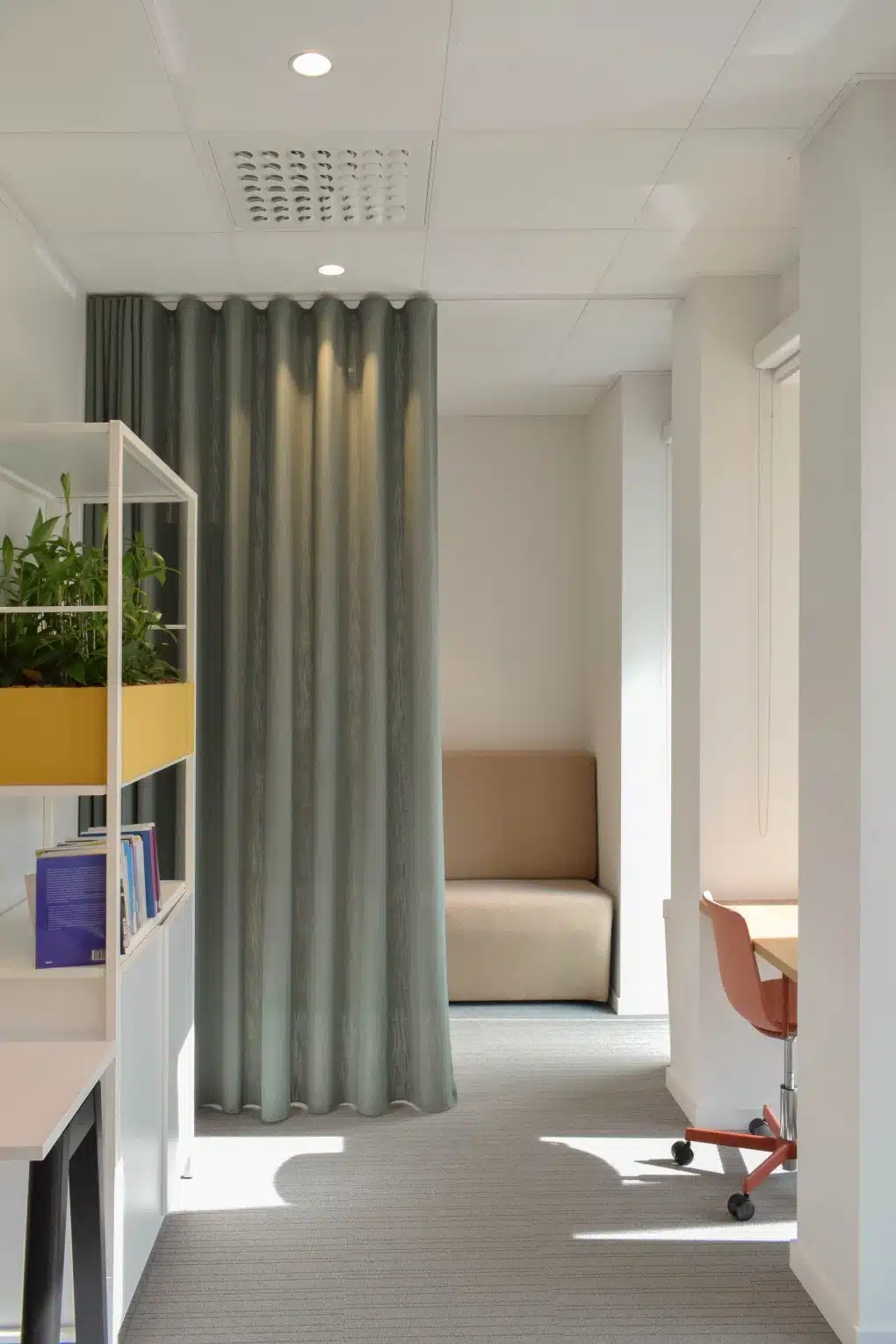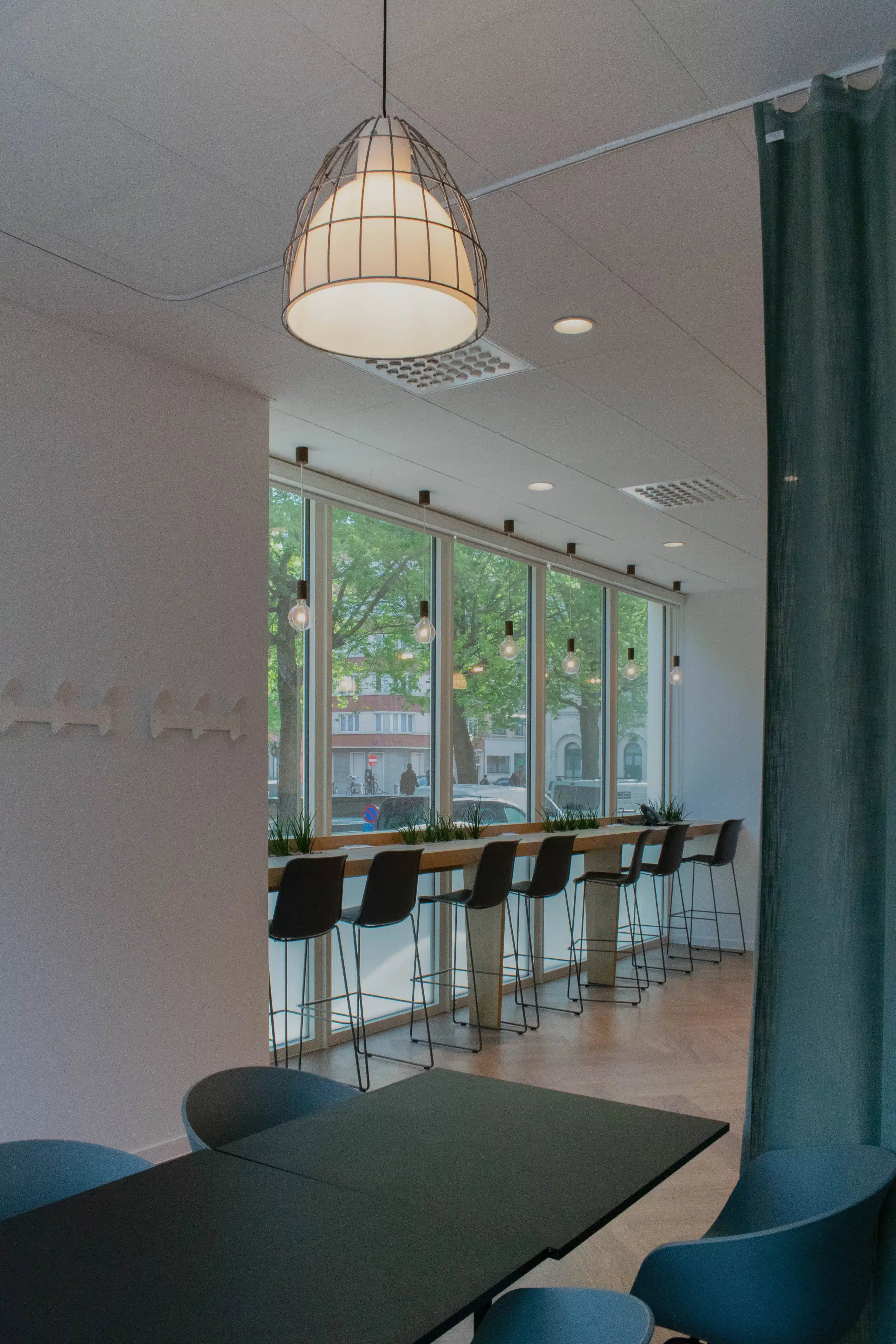 Met die inbreng begon ze “te puzzelen tot het klopte”. En het resultaat mag er zijn. “Met een open landschapskantoor, multifunctionele plekken en aparte bubbels creëerden we een ruimte die interactie stimuleert en het teamgevoel versterkt. Tegelijk is het perfect mogelijk om je te focussen of afgezonderd te werken”, vertelt ze. “De aankleding is kleurrijk, huiselijk en warm. Ik wilde de medewerkers het gevoel geven dat ze thuiskomen op kantoor.”