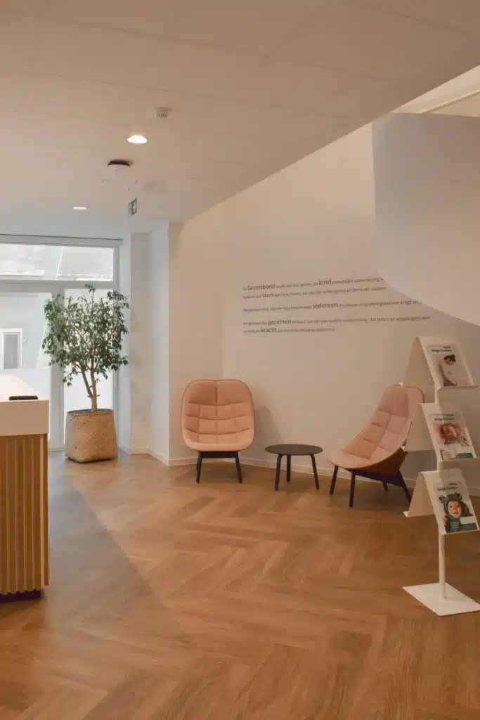 Voor het kleurenpalet greep Natascha terug naar natuurlijke kleuren zoals terracotta, groen en oker. “Die zorgen voor aangename prikkels”, legt ze uit. Buro Project mocht op basis van Natascha’s moodboards het meubilair uitkiezen. Fons: “Er moest veel gebeuren op korte termijn. Buro Project was niet zomaar op vlak van prijs-kwaliteit de ideale partner, maar kon de job ook op tijd gedaan krijgen.” Project Advisor Hannah Stavropoulos vertelt: “We stelden meubilair voor dat echt bij Gezinsbond past. Het lichte hout voor de bureaubladen en in de kasten, de vele verschillende stoffen, de Scandinavische touch in het design, de warme kleuren van de stoelen … Alles draagt bij tot een huiselijke en intieme sfeer.”
