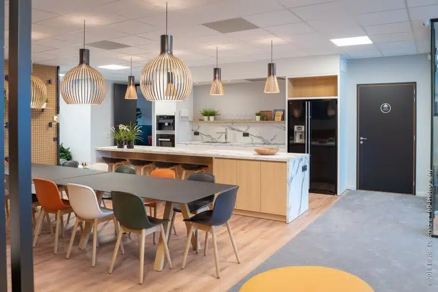 Van hokjesdenken naar ergonomie. The IC Group in Aalter werkte in een verouderde structuur met veel opgedeelde kantoren. Hun jarenlange groei en appreciatie voor de trouwe medewerkers plaatste een nieuwe setting hoog op de agenda. In 2018 wisselde ze hun hokjes definitief in voor de ideale omgeving. Om dit te realiseren, was er geen behoefte aan een kleine opfrissing, maar aan een grondige verandering die de laatste officetrends zou integreren.