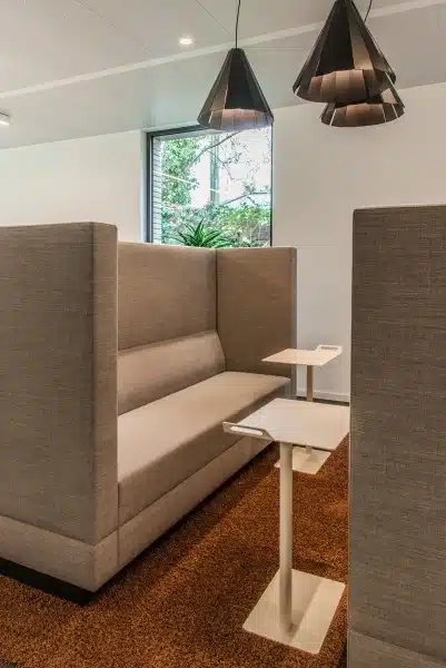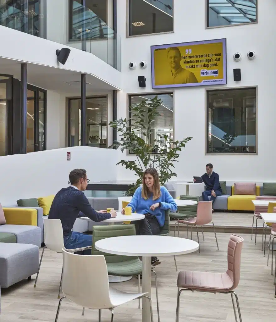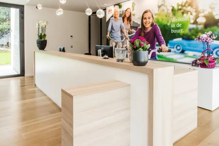 Een warm maar professioneel onthaal stond op het verlanglijstje. Graag ook een Open space gecombineerd met leuke overlegsofa’s en niet te vergeten afzonderlijke plug-in zones om medewerkers van andere vestigingen te verwelkomen.