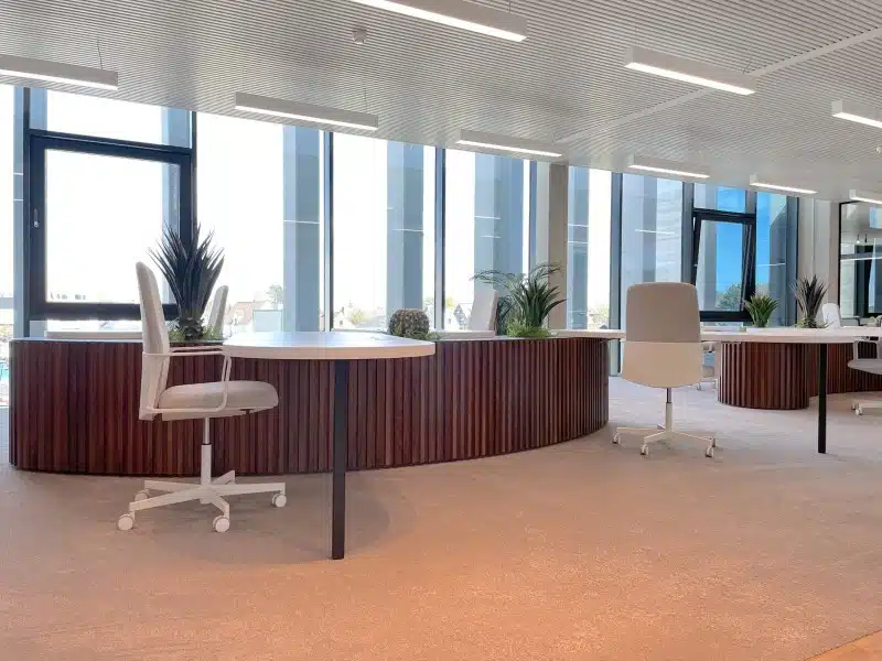 Voor de nieuwe vestiging van Planet Group in Knokke-Heist leverden we het maatwerk en los meubilair, baserend op het ontwerp van interieurarchitect Anthony Boelaert. Er werd gekozen voor een werkomgeving waar natuurlijke kleuren, materialen en organische vormen centraal staan. Een gezellige en uitnodigende centrale ruimte nodigt uit om elkaar te ontmoeten en te connecteren.