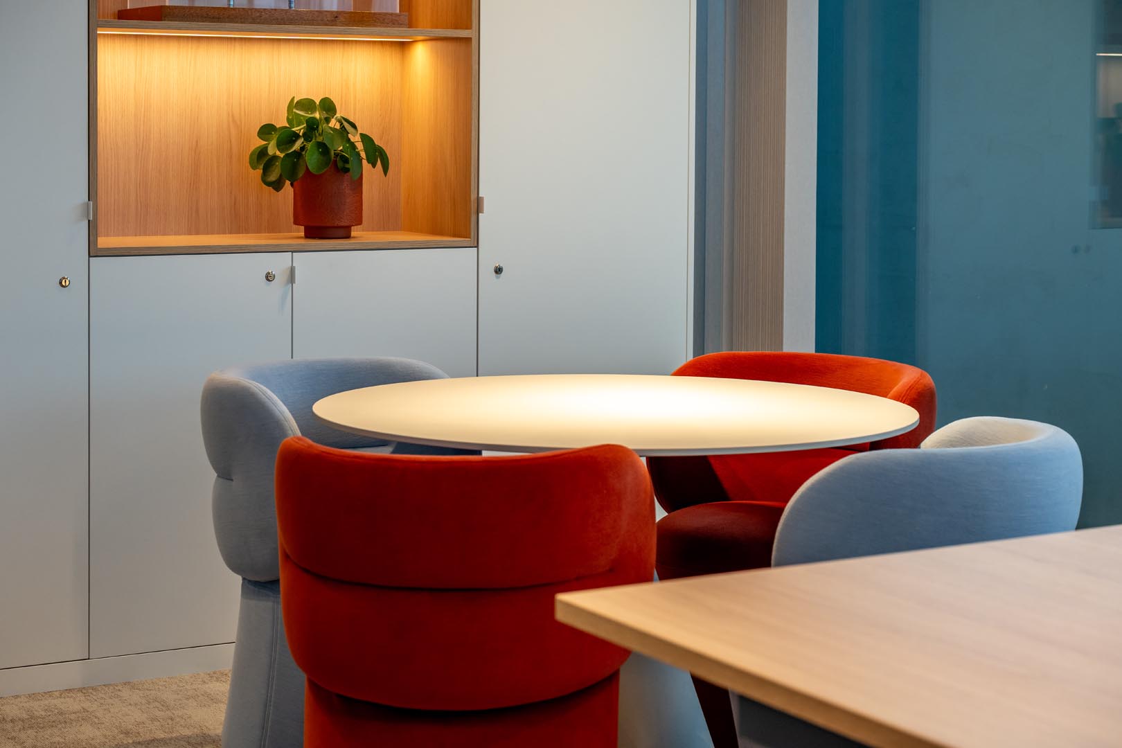 Het ontwerp van LMS Architecten gaf een duidelijke richting en samen hebben we dat verder aangescherpt zodat de ruimtes prettig aanvoelen in gebruik. Met de juiste kleuren, materialen en het meubilair dat alles laat kloppen, sluit het geheel mooi op elkaar aan en voelen de ruimtes rustig en natuurlijk aan wanneer je erdoor beweegt.