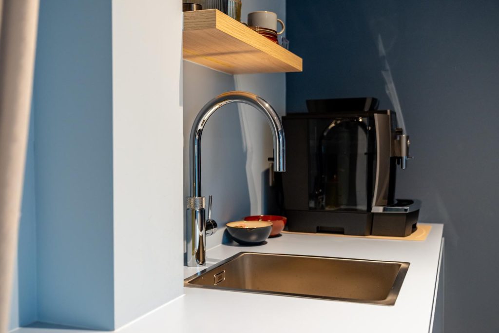 Toen alles klopte op papier, hebben we het ook praktisch waargemaakt. Van het losse meubilair tot de afwerking van kleuren en materialen. Alles werd afgestemd op het ontwerp van LMS Architecten en verder verfijnd zodat het precies zo zou aanvoelen als bedoeld: rustig, warm en typisch Port Oostende.