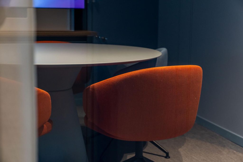 Stapelhuis Entrepot heeft een robuuste, bijna ruwe uitstraling. Daarom kozen we voor meubilair met afgeronde en organische vormen. Ronde vergadertafels, een zachte vorm voor het keukeneiland en stoelen zonder harde lijnen.