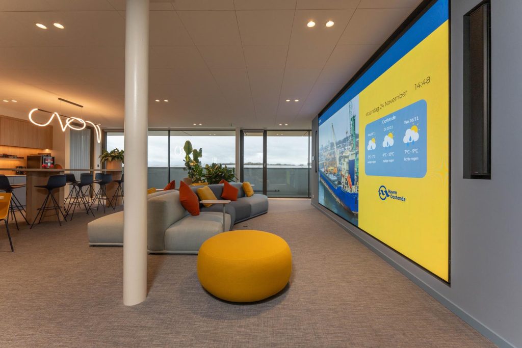 Akoestisch comfort was voor Port Oostende erg belangrijk. Tapijttegels, geweven vinyl, een akoestisch plafond, wanden en gordijnen zorgen ervoor dat de ruimtes warm en zacht klinken.