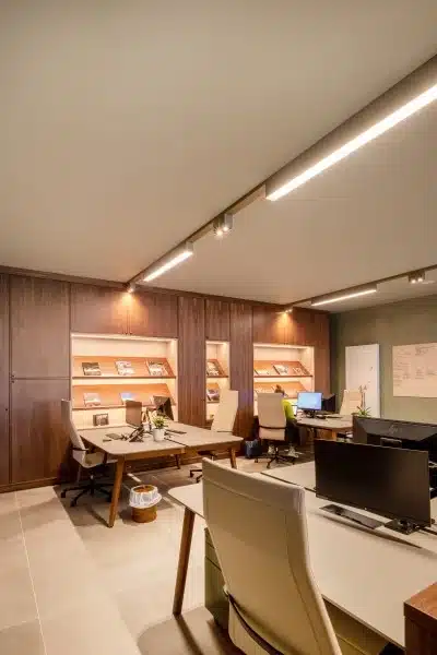 Ook verlichting was een belangrijk element in deze ruimte, hiervoor werd samengewerkt met Belgische verlichtingsexpert DARK. Een combinatie van functionele elementen en esthetische eyecatchers brengt de gezelligheidsfactor op het hoogtste niveau.