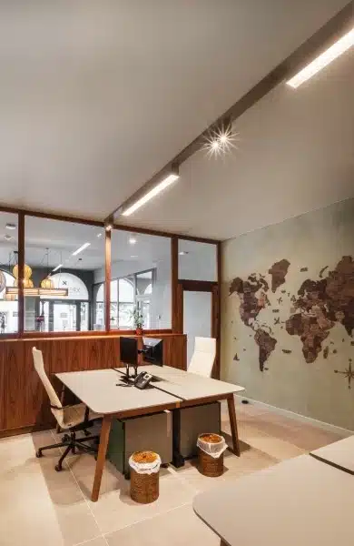 Voor de nieuwe vestiging van Xperience Travel in Sint-Martens-Latem leverden we een totaalinrichting van hun kantoor af. Er werd gekozen voor een werkomgeving waar natuurlijke kleuren en materialen centraal staan. Het geheel geeft een heel high-end uitstraling, passend bij de unieke reizen die Xperience Travel aanbiedt. Bij het binnenstappen van de ruimte waan je je direct reeds op reis!