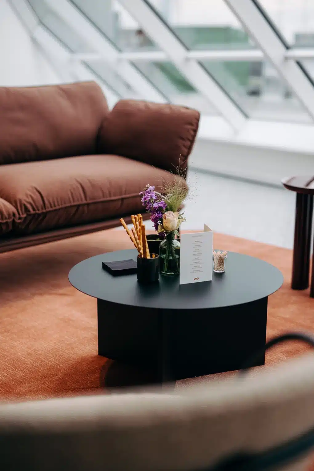 Onze interieurarchitecten werkten het meubilair uit op basis van het moodboard van de architect. We stemden kleuren, materialen en silhouetten zorgvuldig af, zodat het plaatje klopte tot in het kleinste detail. Afgeronde meubels, wollige stoffen en warme tinten zorgen voor een gevoel van rust en connectie, zonder het zakelijke karakter te verliezen.