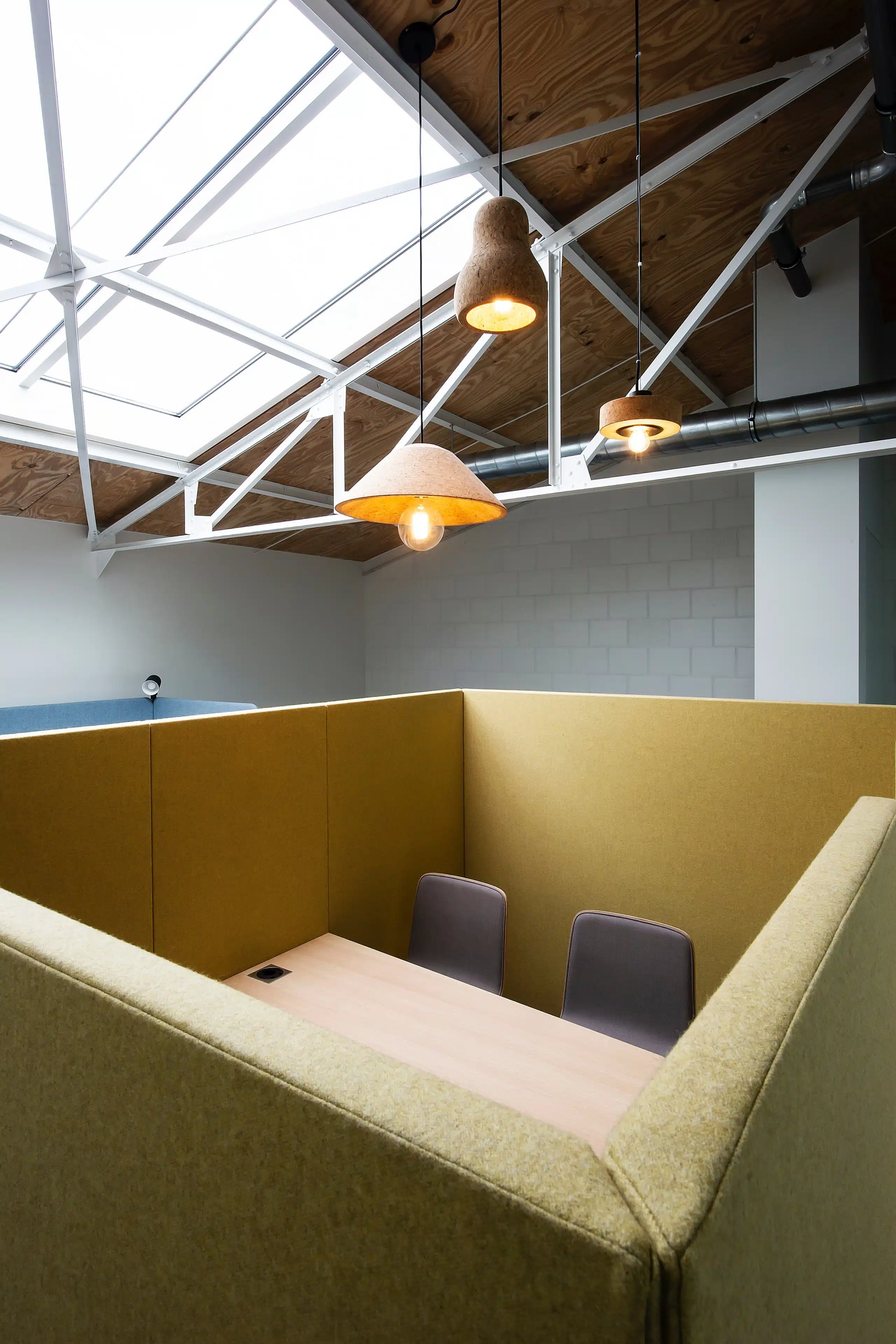 Bij informele meetings beschikken mensen over gezellige zitbanken, pittige poefs en handige whiteboards. In formele vergaderzalen voorzien we o.a. dynamisch meubilair met verhoogde tafels. Ongestoord bellen kan in de telefoonhokjes en in de hoge overlegsofa blijft elk gesprek tussen 4 ogen (en oren). Neon, tegels en barkrukken geven de ontspanningsruimte een kabbelend café-gevoel. Bij WATT is het aangenaam werken en dat versterkt de aantrekkingskracht van de hele community. Die balans tussen genieten, “gáán!” en meeten is cruciaal voor het welzijn en het welslagen. Minder stress, meer succes.