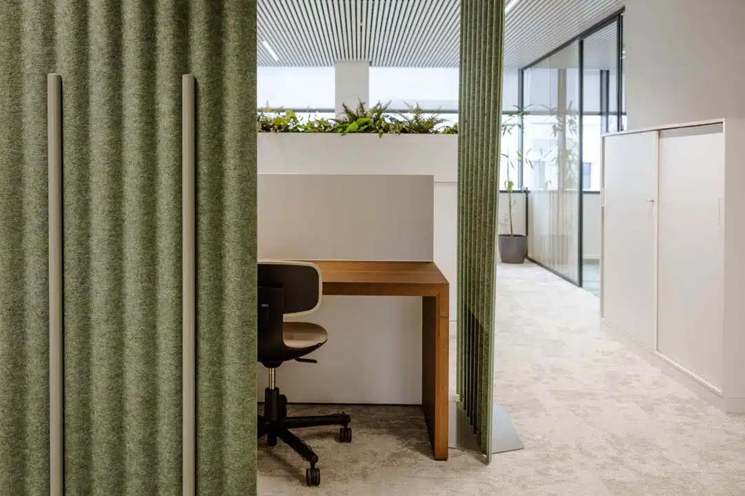 In open ruimtes kan het snel rumoerig worden. Akoestische panelen, belcellen en stille zones zorgen voor rust. Dit maakt het makkelijker om geconcentreerd te werken of een vertrouwelijk gesprek te voeren.