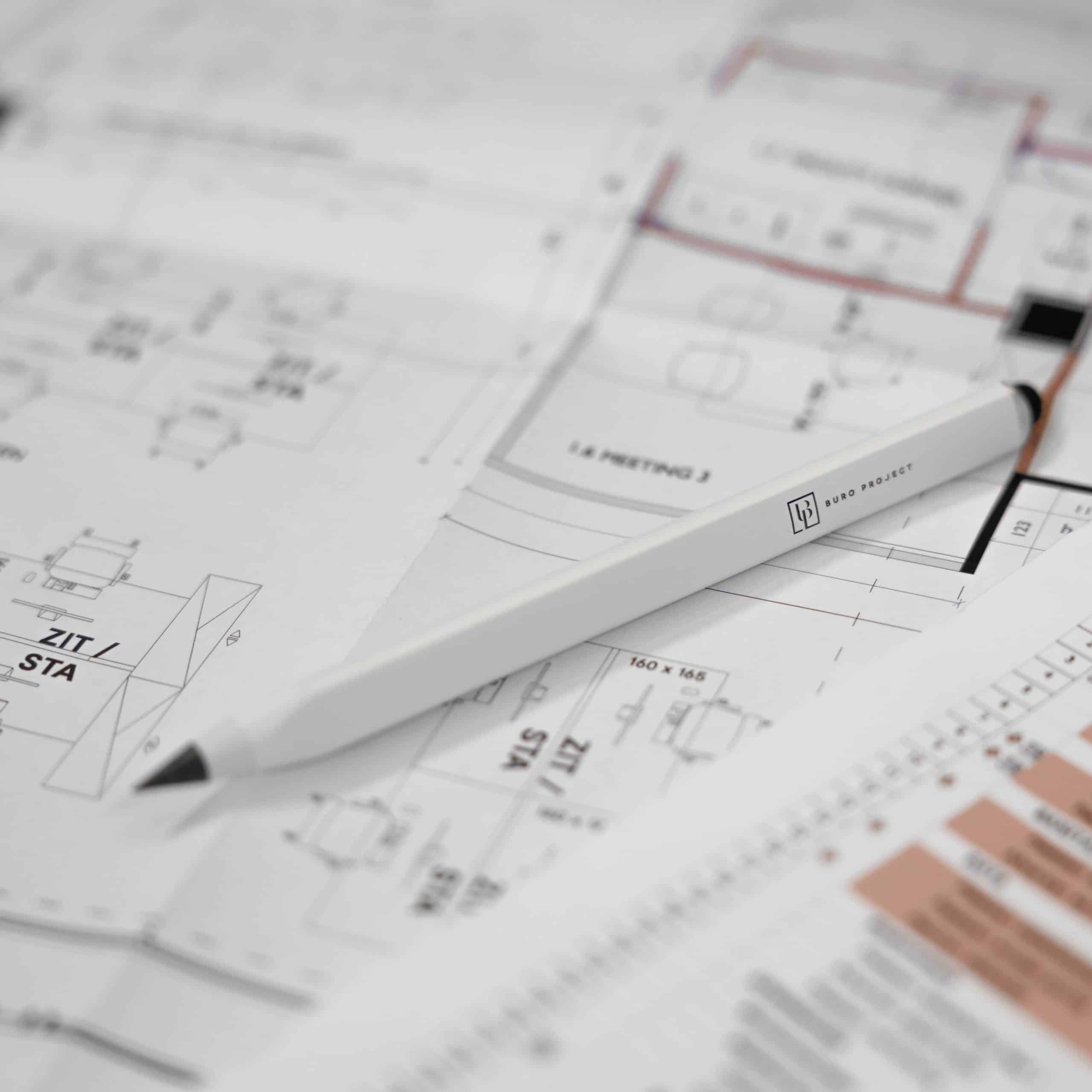 Het ontwerp wordt omgezet in een uitvoeringsdossier met een duidelijk overzicht van de werken, het budget en de planning. Dit dossier vormt de leidraad voor een vlotte en efficiënte realisatie van jouw nieuwe werkplek.