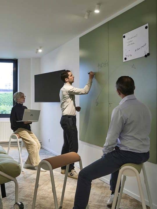 Je wordt actief betrokken bij elke stap. Visualisaties, materiaalvoorstellen en moodboards worden samen besproken en bijgestuurd. Dankzij onze transparante samenwerking en open communicatie krijg je een werkplek die niet alleen mooi is, maar ook écht werkt voor je mensen.