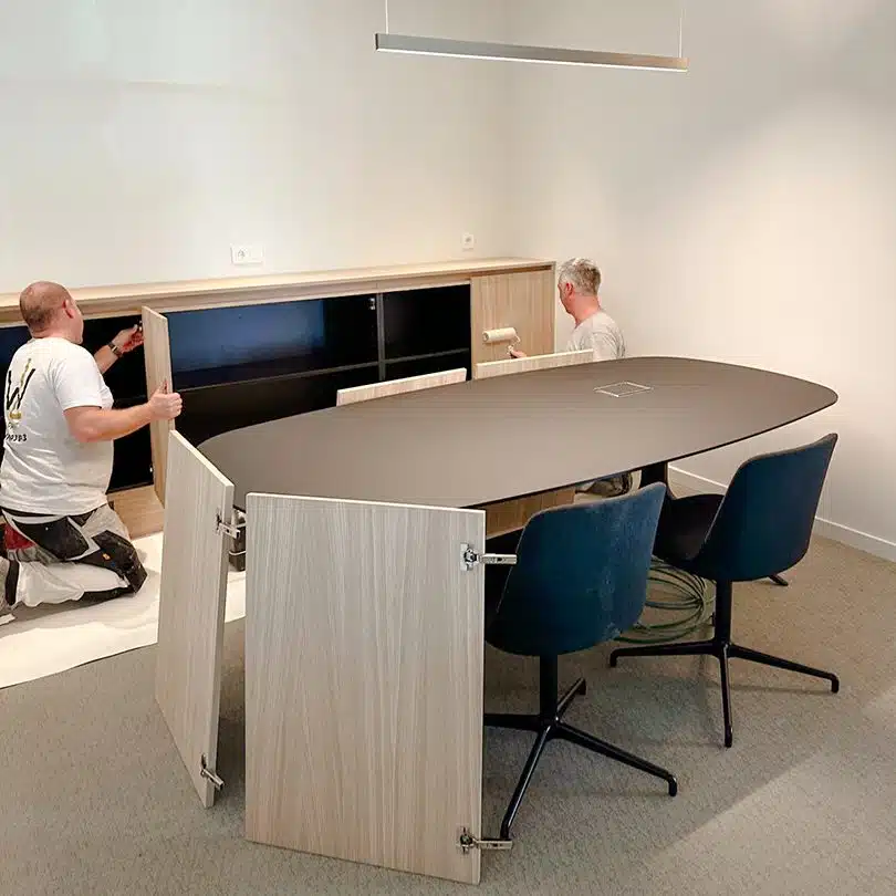 Wanneer het ontwerp is goedgekeurd en de planning vastligt, hoef jij je nergens zorgen over te maken. Alles wordt voor je geregeld, van levering tot installatie. Ervaren installateurs zorgen voor een correcte montage en afwerking. Elk detail wordt gecontroleerd: van ergonomische opstelling tot akoestische oplossingen en technische aansluitingen.